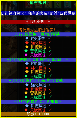 | 稀有礼包 | 20000/元宝(邀请奖励) |