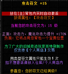 - 合成完成后,符文还可以进阶,共分为15个阶段,属性递增!
