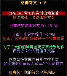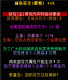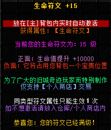 - 开放背包符文系统,符文道具放入背包后,自动激活符文属性。(无需穿戴装备就可实时生效,全网低倍服独家!)